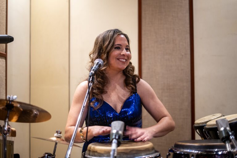 Instruments she can play onboard: drum kit, flamenco cajón, bongo, congas, timbales, electronic drums.